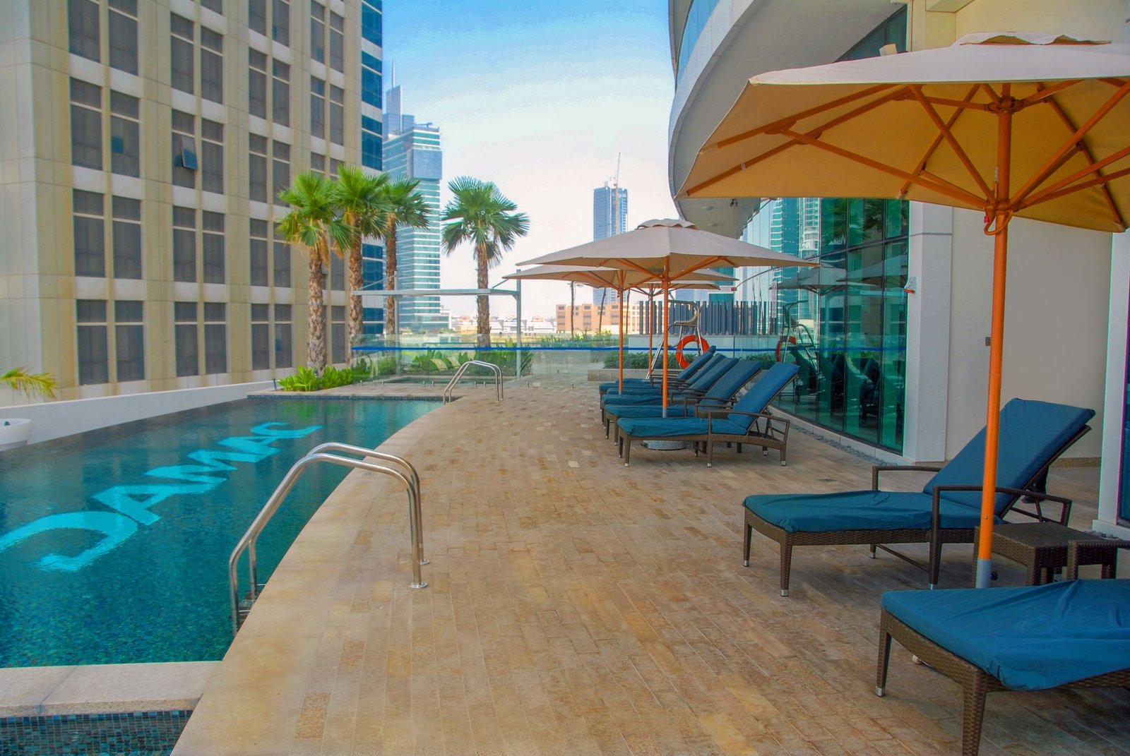 Exquisite 22-storey hotel apartments tower located directly on the Dubai Water Canal in Business Bay, offering fully furnished studios, one-, two-, and three-bedroom residences. Each apartment features elegant interiors, fully equipped kitchens, luxurious bathrooms, and many include spacious balconies with canal views.